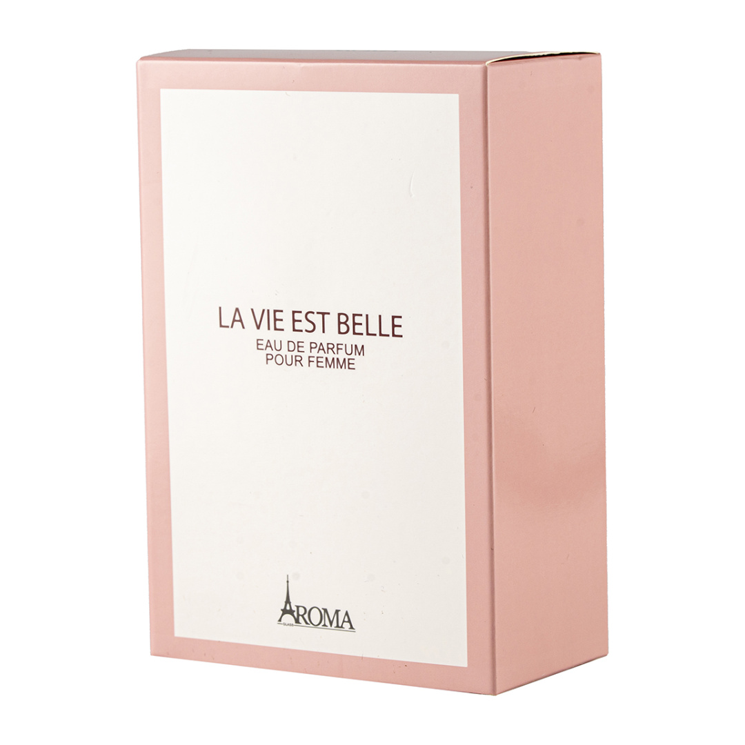ادوپرفیوم زنانه آروما مدل La Vie Est Belle با رایحه گرم و شرقی-گلی و الهام از عطر معروف Lancôme La Vie Est Belle تولید شده است. این عطر برای فصول سرد سال، به ویژه پاییز و زمستان مناسب است. نتهای آغازین شامل گلابی و انگور سیاه، نتهای میانی گل یاس، شکوفه پرتقال و زنبق، و نتهای پایانی ترکیبی از نعناع هندی، وانیل و لوبیا تنکا میباشند.